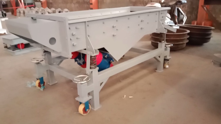 客戶定制ZXS-0718直線篩:普鋼材質,篩板為不銹鋼沖孔板(δ=3mm 25*25mm孔),裝萬向輪,電機功率0.37kw*2 電壓220V;
